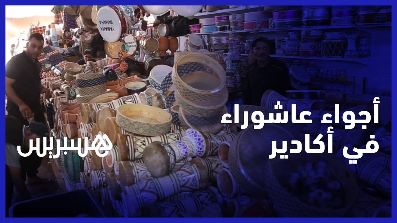 أجواء عاشوراء في سوق الأحد بأكادير.. رواج “الطعريجة” وألعاب الأطفال, وارتفاع لأسعار الفواكه الجافة