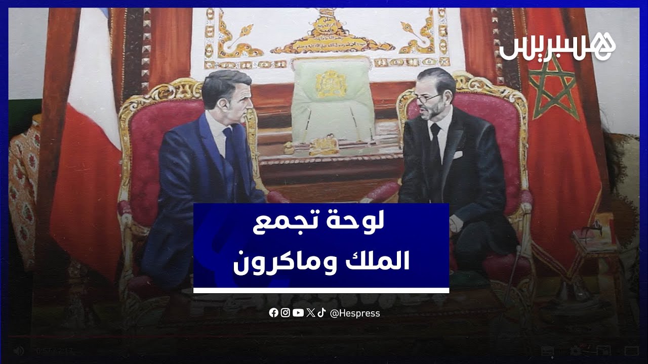 بشرى ابنة العيون.. تبدع في رسم لوحة تجمع الملك محمد سادس والرئيس ماكرون بعد زيارته الأخيرة للمغرب